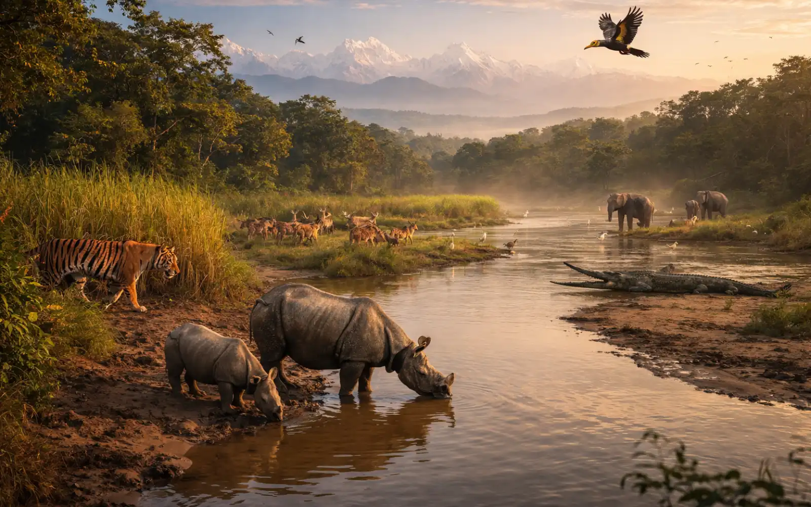 Autumn is one of the most popular times to explore Nepal, and for good reason. AfteNepal is celebrated worldwide for snow-capped peaks and iconic trekking routes, yet the country’s subtropical plains reveal a completely different kind of wonder. In the southern Terai, dense forests, winding rivers, grasslands, and wetlands create one of South Asia’s richest wildlife habitats. Here, travelers trade mountain boots for binoculars and wake before sunrise to search for rhinos, deer, crocodiles, elephants, and perhaps even the elusive Bengal tiger.