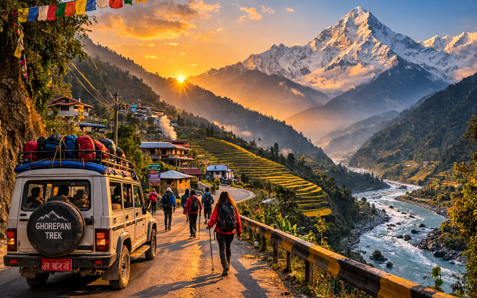 The journey begins with a drive from Pokhara to Nayapul, the traditional starting point of the Ghorepani trek.