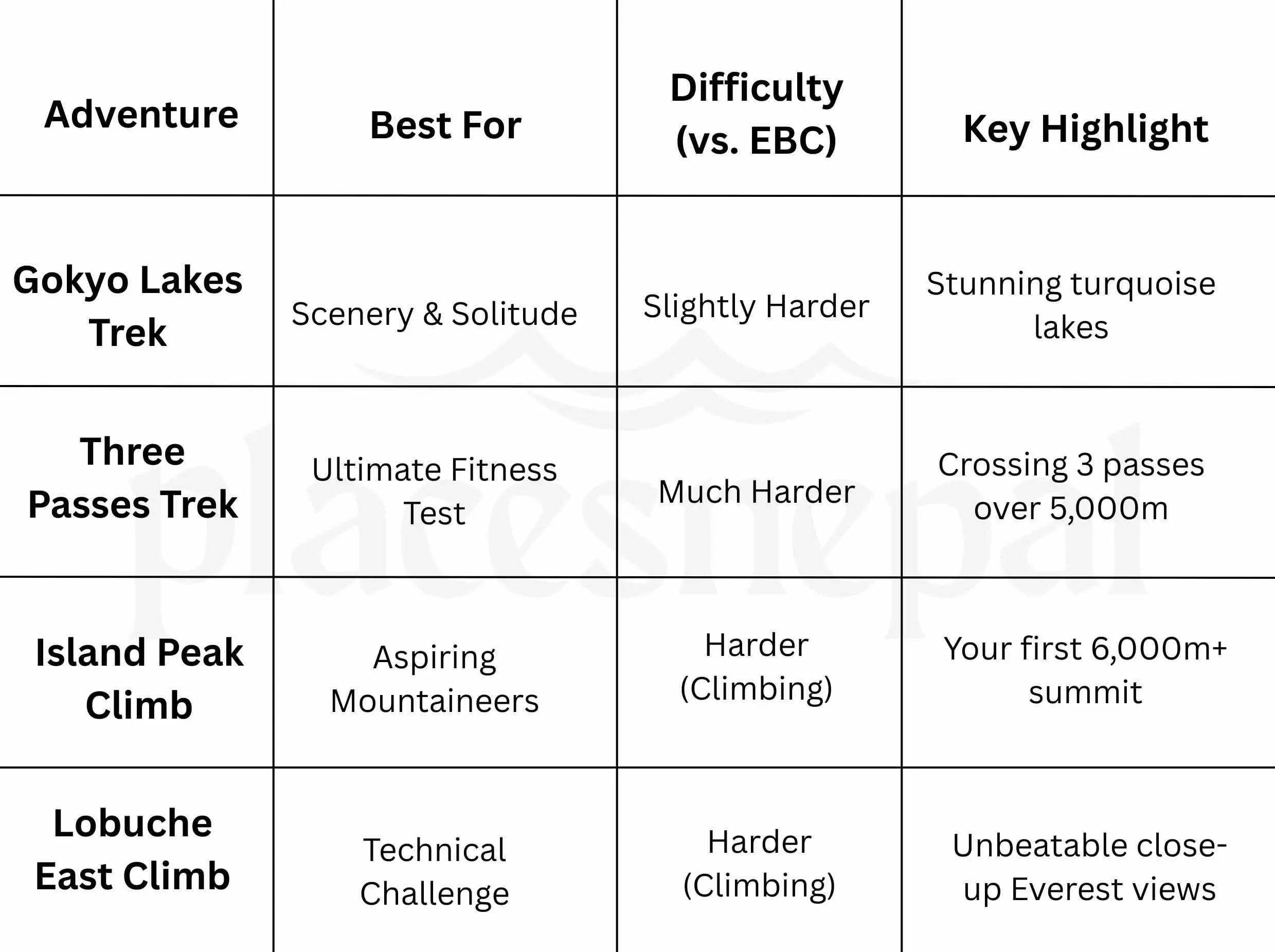 Done Everest Base Camp? Discover epic next adventures in Nepal, from quiet Gokyo Lakes to the tough Three Passes, or your first Himalayan summits like Island Peak or Lobuche East.