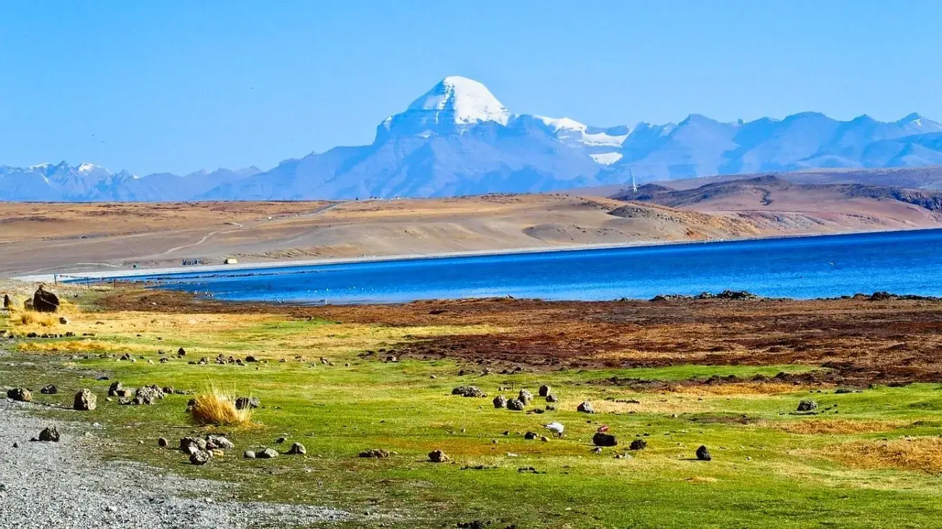 Four major rivers start near Mount Kailash: the Indus, Sutlej, Brahmaputra, and Karnali. These rivers support billions of people across Asia. Two sacred lakes lie nearby: Lake Manasarovar (freshwater, considered holy) and Rakshastal (saltwater, called the Lake of Demons).