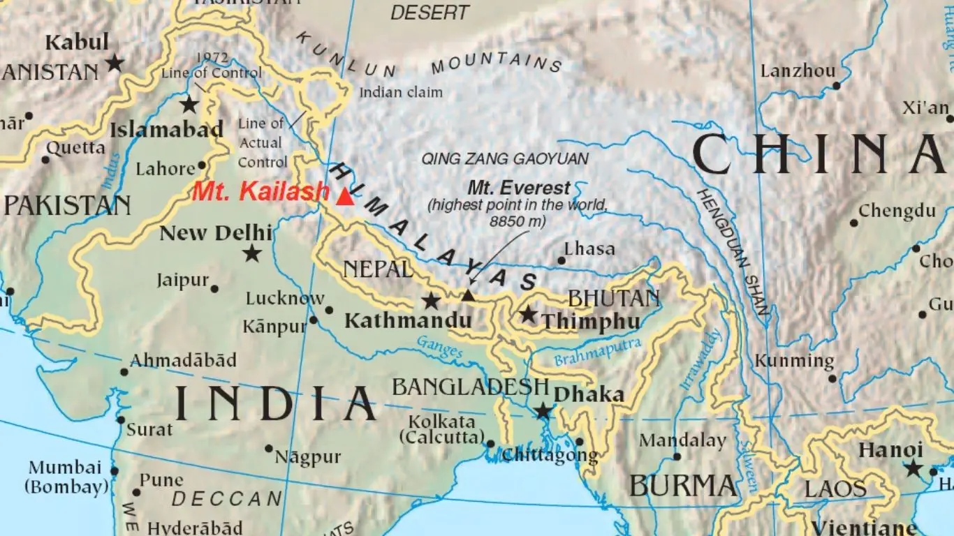 Mount Kailash sits in the Gangdise mountain range in Tibet's Ngari Prefecture, near China's borders with India and Nepal. The mountain is about 1,400 kilometers from Lhasa and 782 kilometers from Kathmandu.