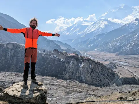 After you’ve completed the trek and crossed the iconic Thorong La Pass (5,416m), you’ll descend to the Mustang region. From Jomsom (2,720m), you’ll take a local bus to Pokhara, passing through charming villages and landscapes that transition from arid mountains to lush greenery.