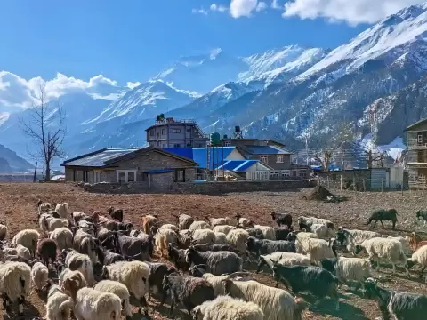 On your way, you may encounter a herd of blue sheep, also known as Jharal, in their natural surroundings. The journey to Yak Kharka requires a bit of uphill climbing before you finally reach your destination.