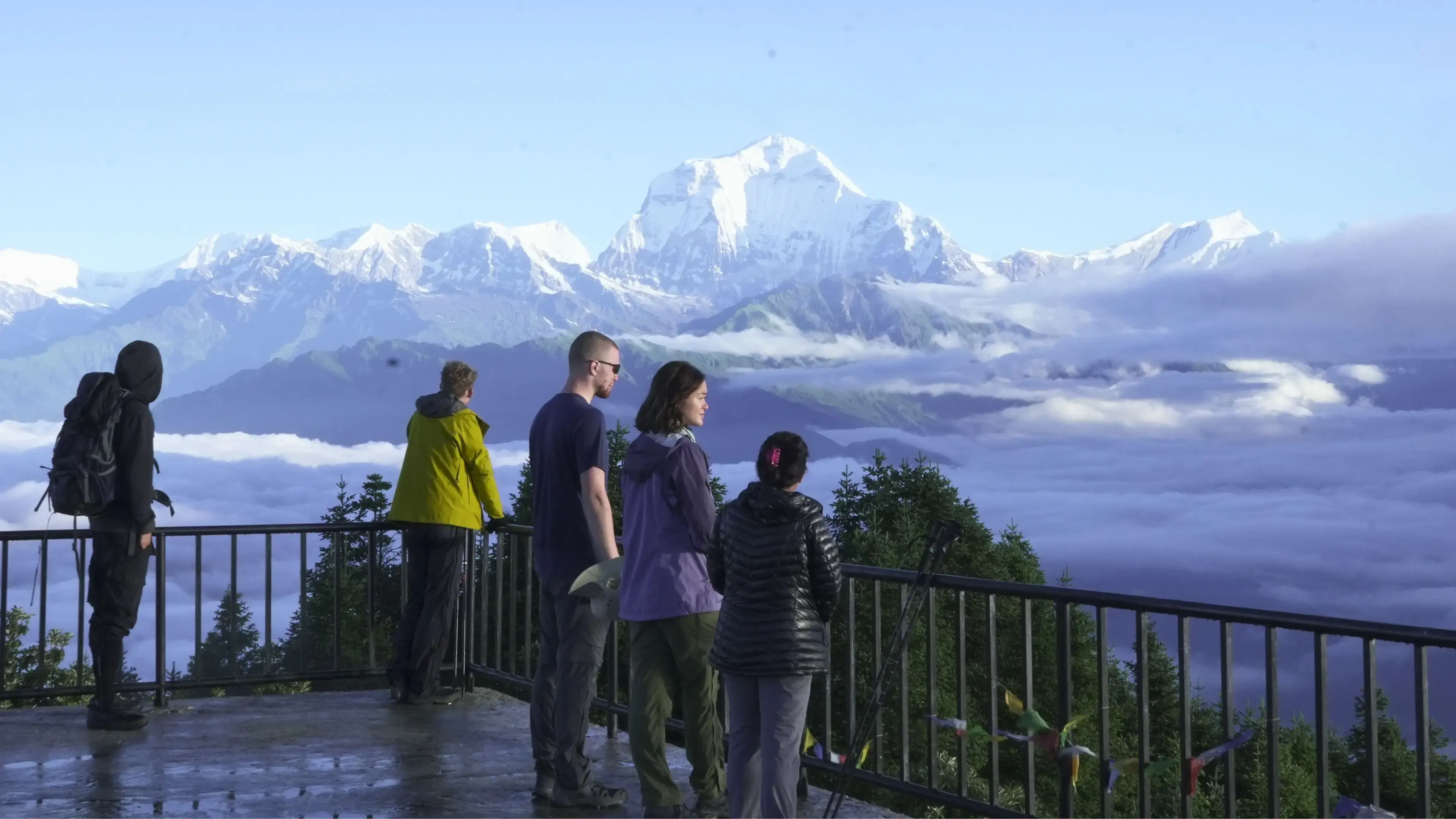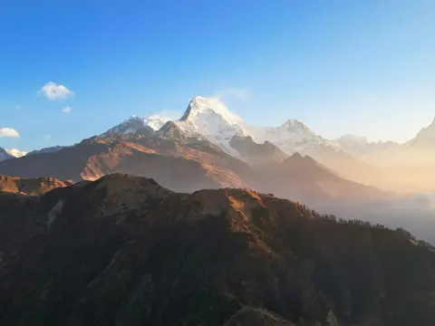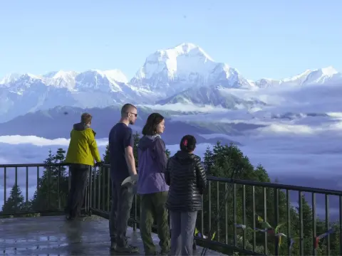 Witness a 360-degree panoramic sunrise over the Annapurna and Dhaulagiri ranges.