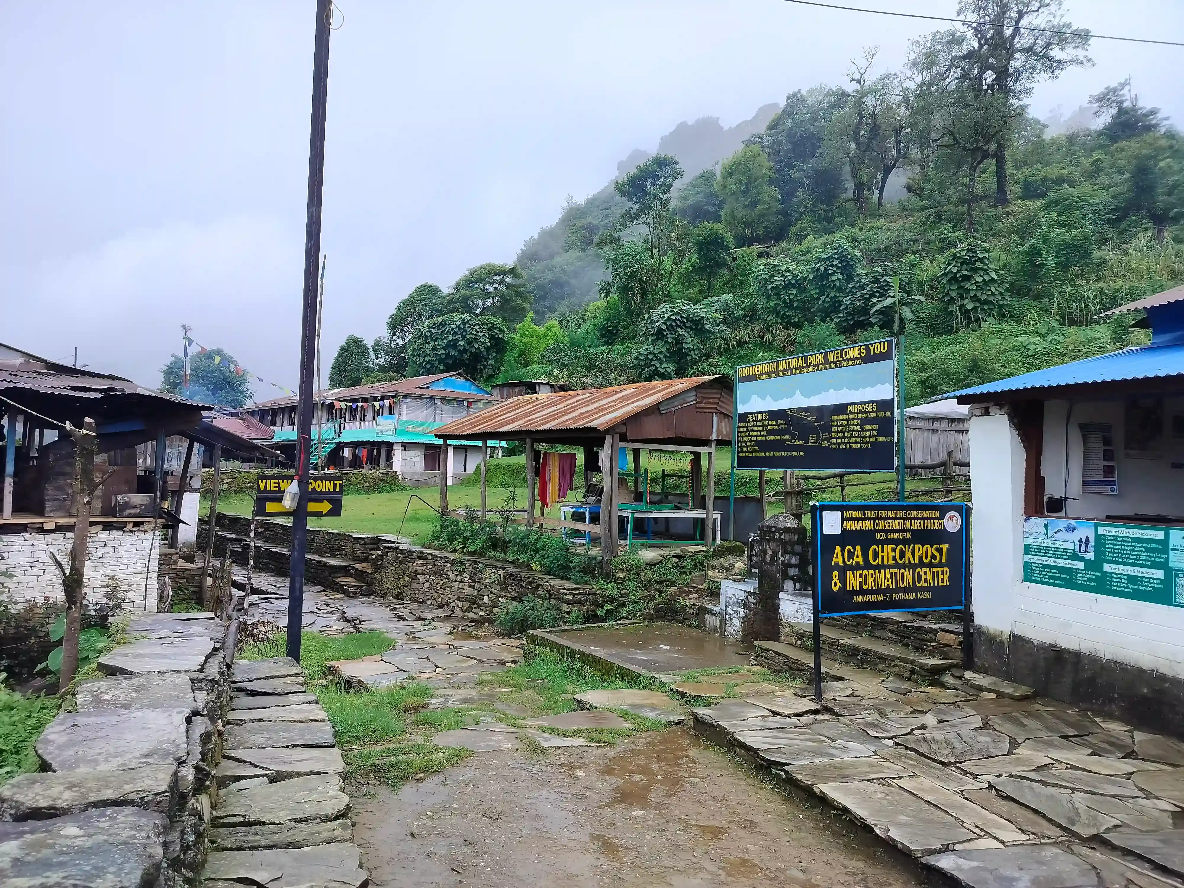 Pothana serves as the entry point to the Annapurna Conservation Area, where you'll need to validate your permits before heading to Pitam Deurali. Pitam Deurali is a favored overnight stop for trekkers. You'll then proceed to Forest Camp and Low Camp, passing through alpine, oak, and rhododendron forests for your overnight stay.