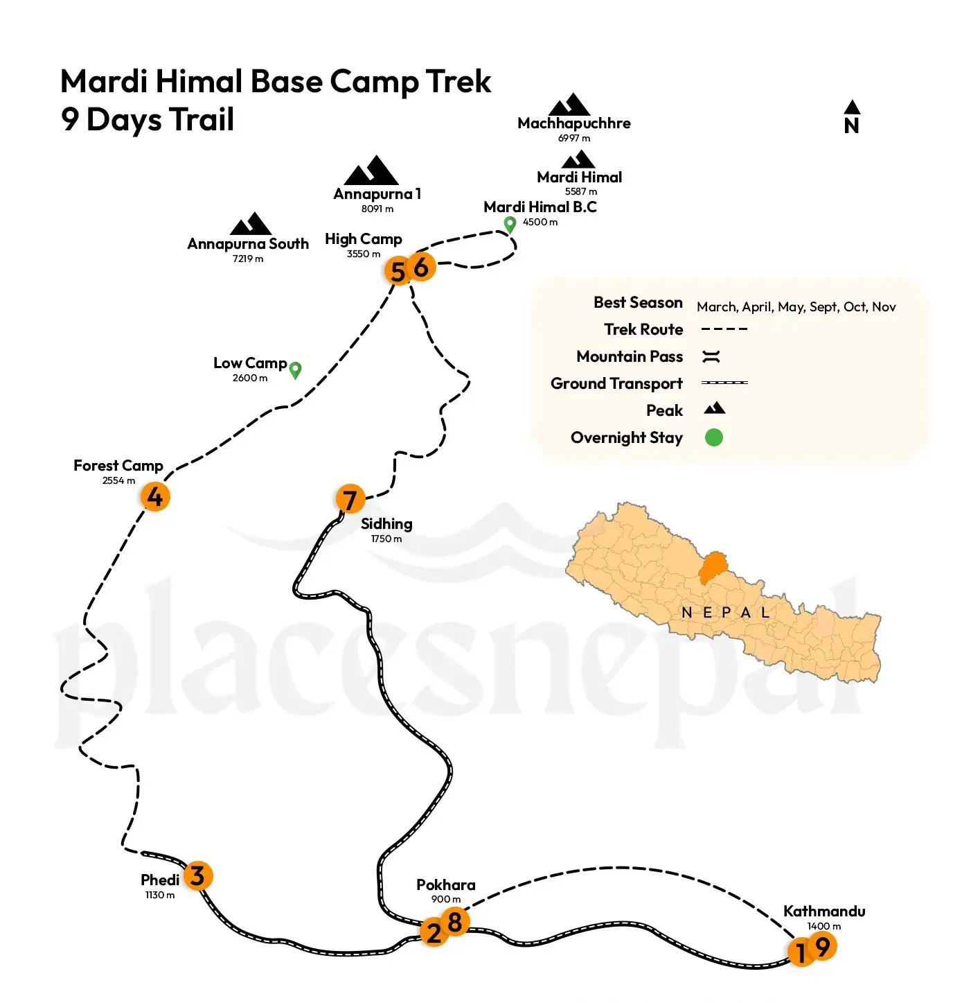 While the Mardi Himal Trekking route is relatively easy, the specific overnight camps may vary depending on the trekking package you choose. For customized Mardi Himal Trekking route packages, don't hesitate to contact Places Nepal.